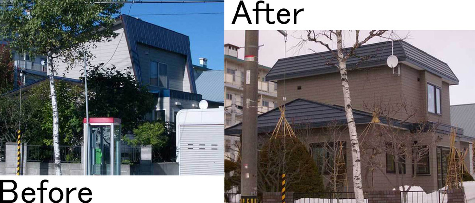 1970年に建匠が施工した住宅を2006年に増改築した事例です。2階屋根はスノーダクトに改造し、1階屋根は雪が落ちやすくしています。外壁は耐震化し、断熱もすべて改修しています。