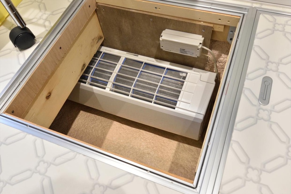 暖房は床下エアコン。基礎をしっかり断熱し、床下から暖気を室内に供給します。しかも熱源はエアコン1台。断熱性能が高いからこそ可能になる方法です。