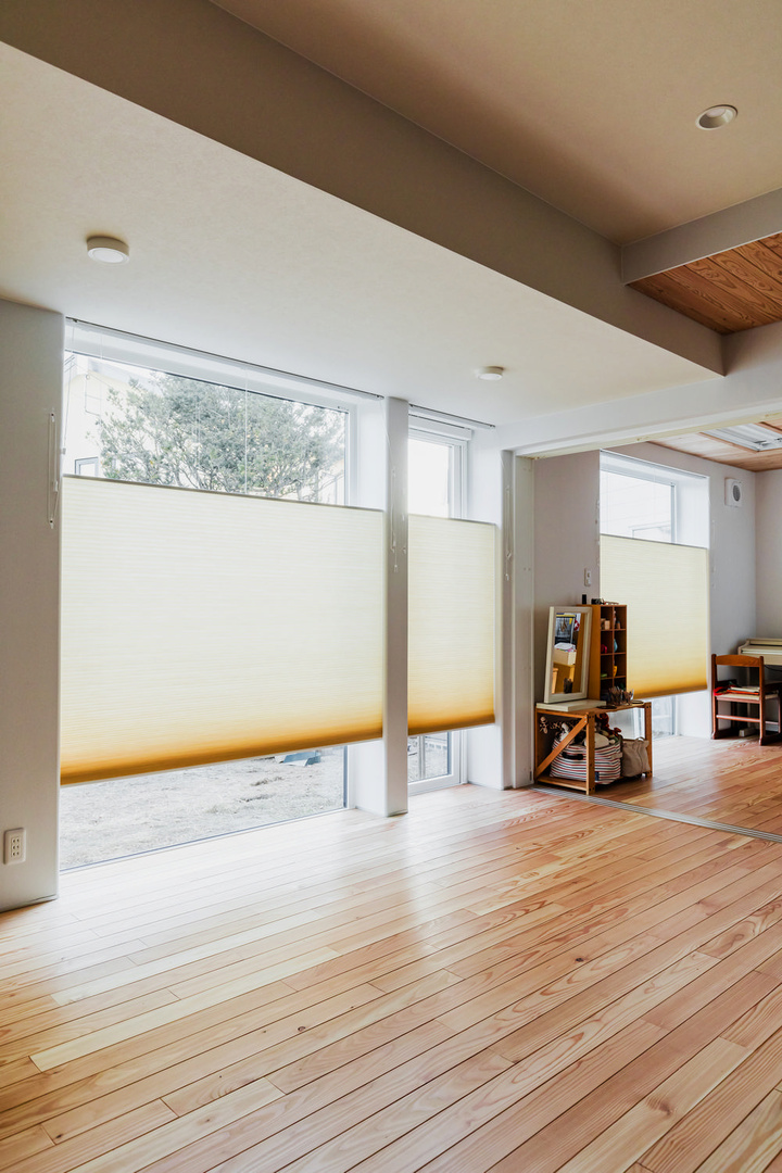 Y邸は壁に200ミリの断熱を入れ、窓はトリプルガラスを使用。ブラインドも断熱仕様のものを入れており、Ua値は0.24、C値は1.0と十勝でもトップクラスの断熱・気密性能を備えた住宅です。取材は12月と冷え込む時期でしたが「冷気は感じませんね。1月が楽しみ」とご夫妻も肌でその暖かさを感じておられるようです。