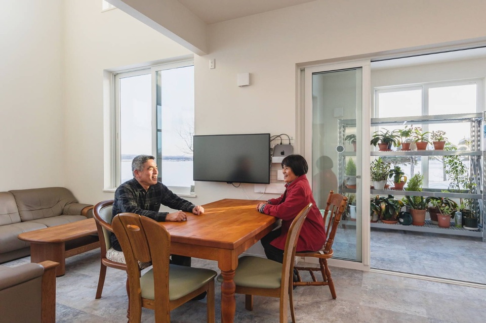 カーリングのインストラクターでもある山川さん、奥様の真幸子さんとの出会いもカーリングでした。英会話という共通の趣味もあるおふたりは取材時も息がぴったり。家を建てたきっかけについて「薪ボイラーを使ってみたかった。新しいものが好きなのかもね」とふり返る山川さんの話に続けて、真幸子さんが「赤坂さん(赤坂正社長)と5分くらい立ち話をしていたと思ったら、『家、建てることにしたから』と帰ってきたの」と微笑みます。