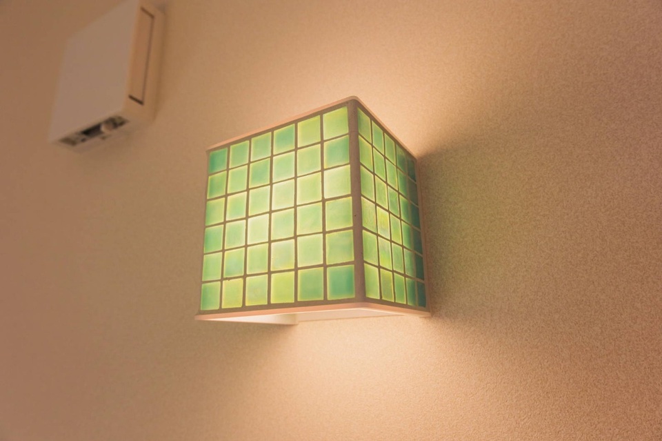 フリースペースの照明。十勝平野を思わせるみずみずしいグリーンが爽やかです。
