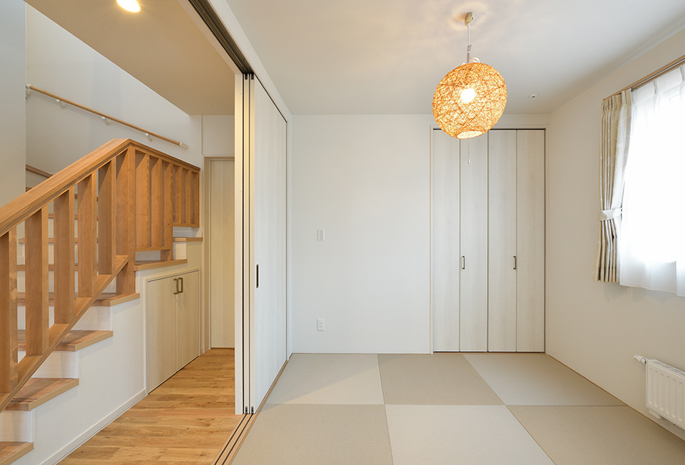リビング横の和室は、筋トレやヨガにも使えます。ごろ寝したり、お子さまと遊んだり、もちろん客室としても使えるマルチなスペースです。