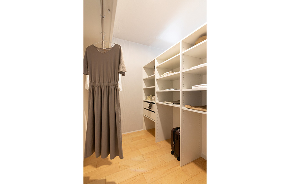 アクセント壁の向こう側はウォークイン・クローゼットになっています。