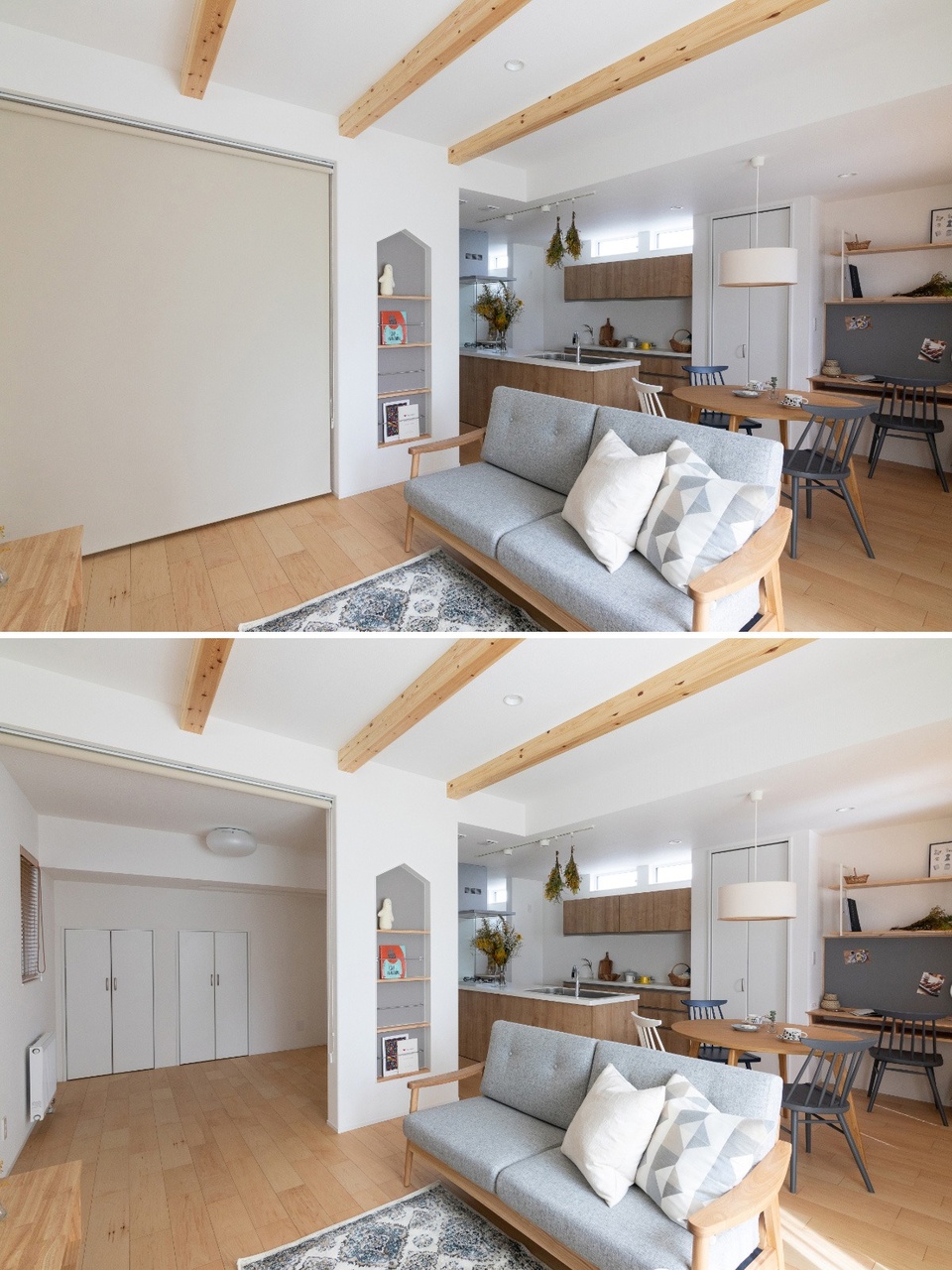 リビングの続き間は、ふだんはお子さんのプレイスペースとして。