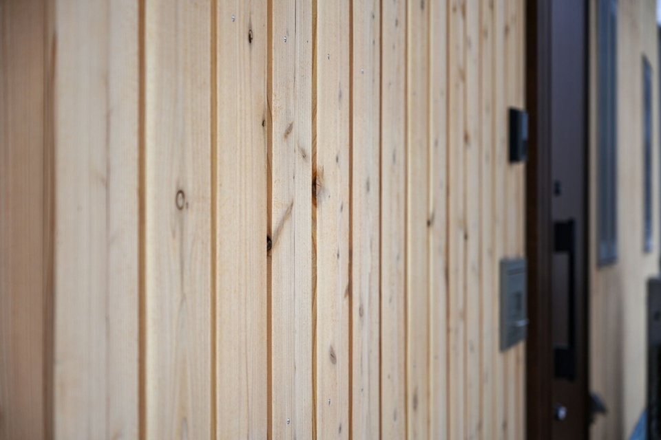 特に外壁については、札幌市内の住宅施工事例を見学し、道南杉は無塗装でも不朽が起きていない、そして経年でグレーに変色している様子が楽しめることを知り、設計施工を依頼した江田建設に道南杉を外壁全面に採用することを依頼しました。