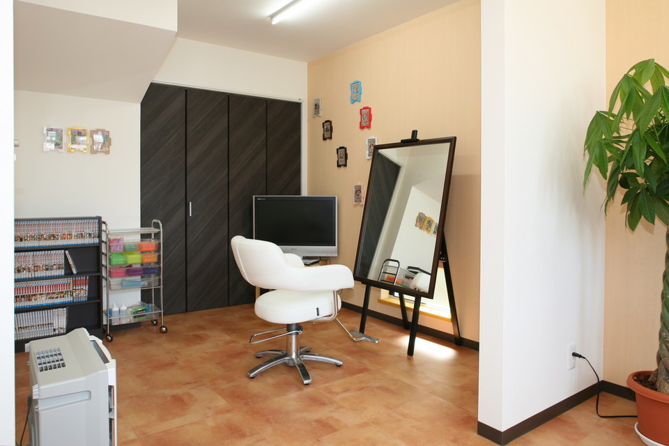専用の洗面台や椅子の設置など、特殊な工事もスムーズにできました。住宅部分は1階に寝室、明るい2階にLDKを配置しています。