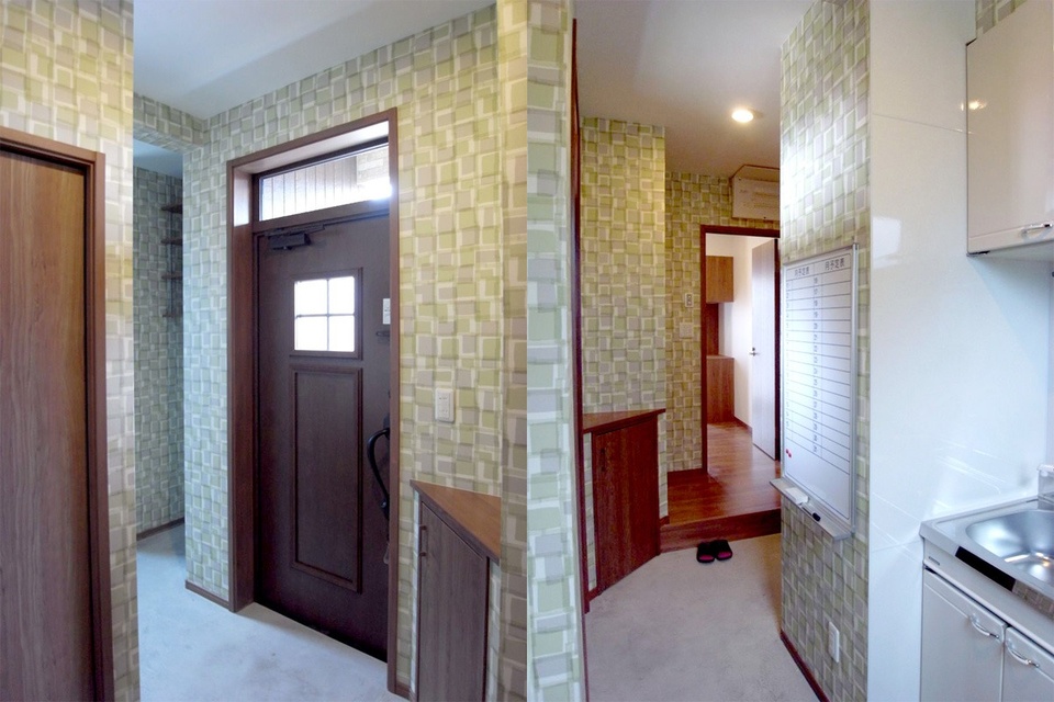 1階が親世帯、2階が子世帯になっているKさま邸。それぞれに玄関を設けています。左が親世帯、右が子世帯の玄関です