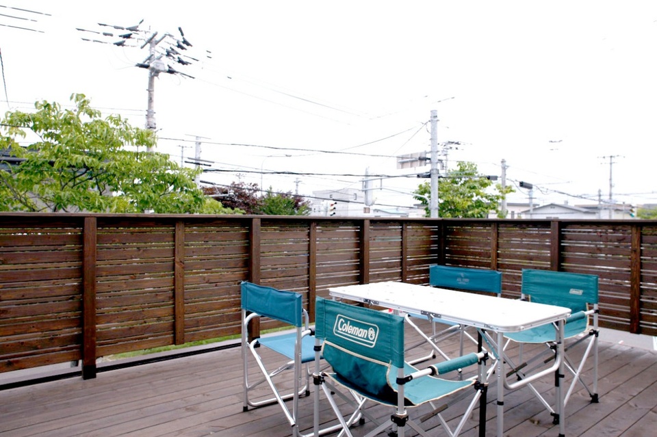 赤坂建設が提案したのは建物と一体化したカーポートの上にバルコニーを設けること。目隠しのルーバーを配し、気軽にプチ・アウトドアができるプランです。