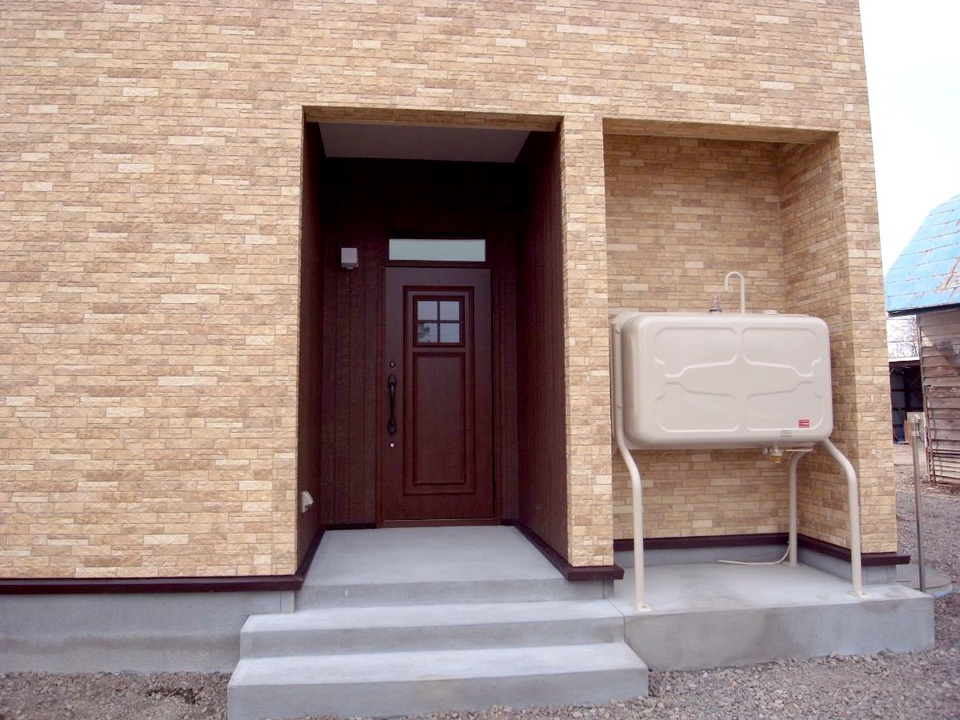 こちらは建物の東側にある勝手口。親子で酪農を営まれているKさま宅では、作業のために出入りする専用口もご要望の1つ。