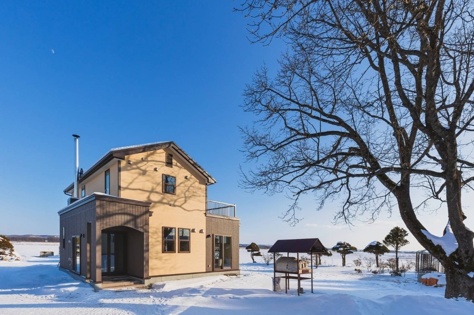 帯広市のAさまのお宅は、交通量の多い街中でも、プライバシーを保ちながら焼き肉などのアウトドアが楽しめる住まいを希望されていました。