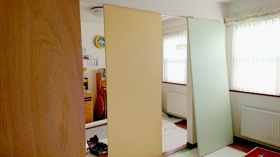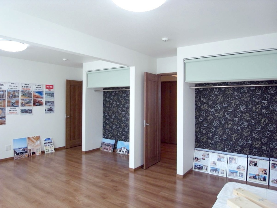お子さまが小さいうちはこうしてスクリーンで簡易的に間仕切ることも。将来は壁を設けて個室にすることも可能です。