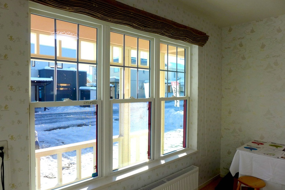 日中は格子窓を介して採り込む外の光や、風景が素敵です。