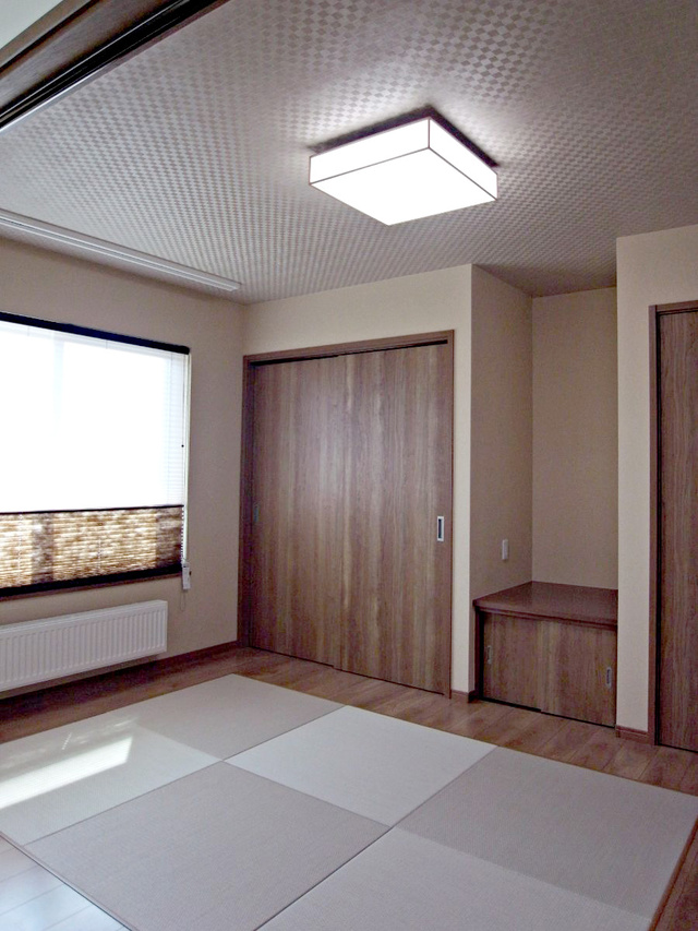 下部収納のついた床の間風のスペースを挟み、押し入りや収納も充実しています。