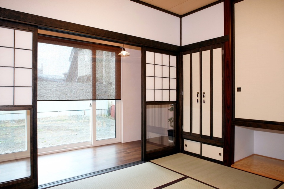 和室も本格仕様になっています。庭の景色が見えるよう、障子とガラスを組み合わせた引き戸を採用しました。