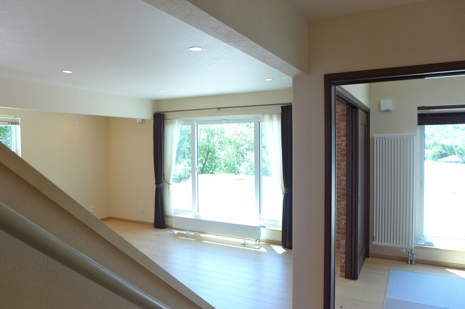 リビング横の予備室からの眺め。LDKはかなりゆったりとした空間になっています。