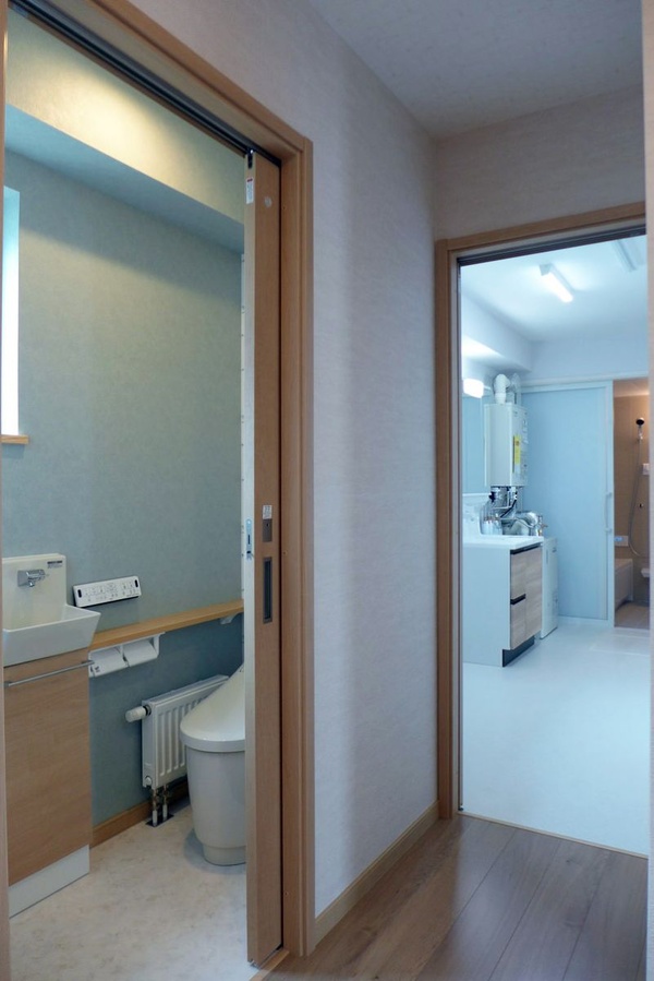 手洗いを設けたトイレ。ユーティリティーも広く確保しています。