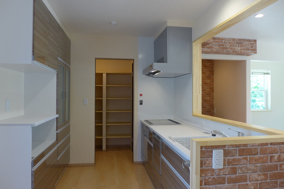 明るさの確保とともに、ゴミ出しなどの動線も考慮し、キッチンには勝手口も設けました。