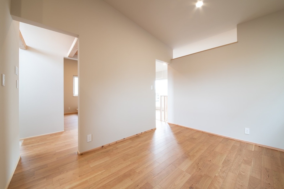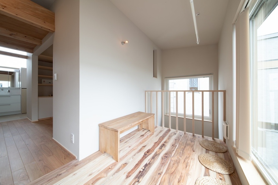 こちらはペレットストーブの吹き抜けに面した居室。右手に開口部が見えます。