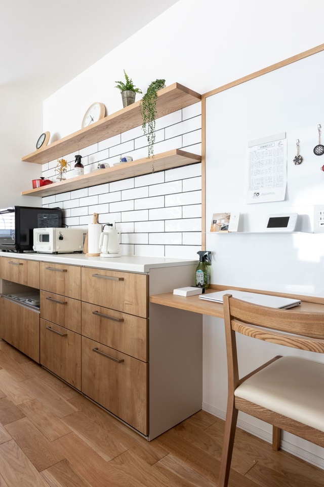 お勉強スペースのあるウッディなキッチン