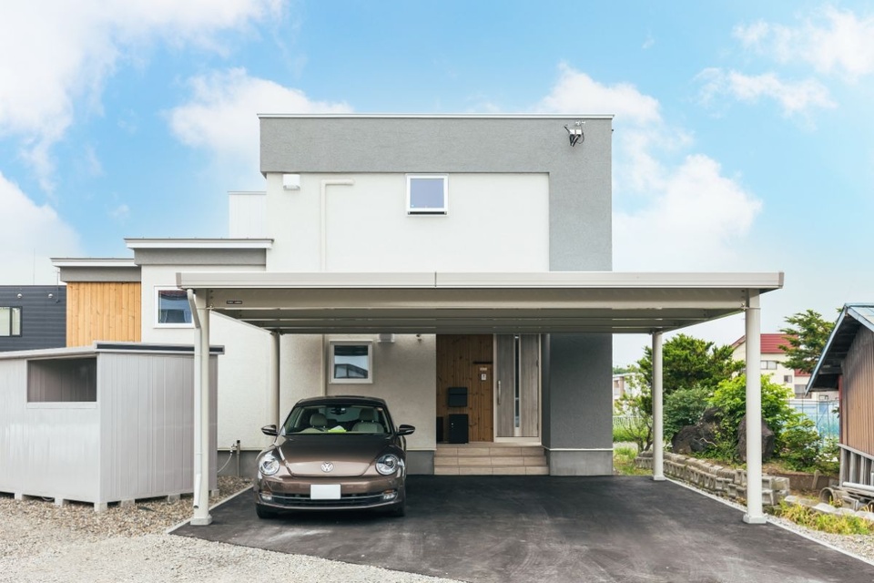 帯広市街の中心部近く、大きな公園のある開放的なエリア。日当たり抜群の三角形の土地に建てられたS邸は、随所に遊び心とプランニングの工夫が満載でした。