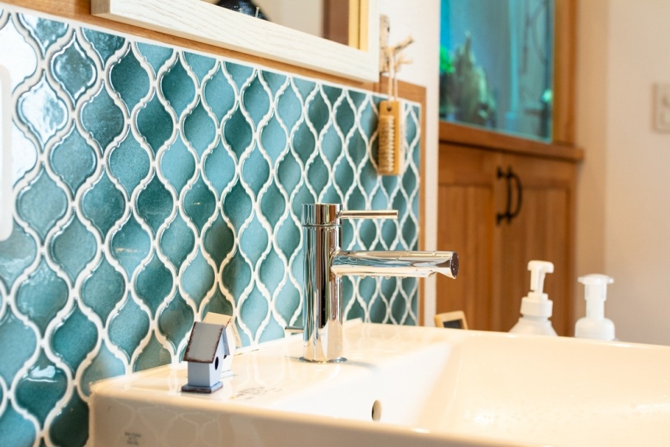 教室が開かれる場所はキッチンとダイニングがある空間ですが、そこに洗面台やトイレもありました。受講生さんたちが、脱衣所やリビングを通らず用を足せるので、自宅でのサロン運営がしやすくなるのです。また、お子さまの参加者も多いので、洗面台は通常より低い位置に設置されています。