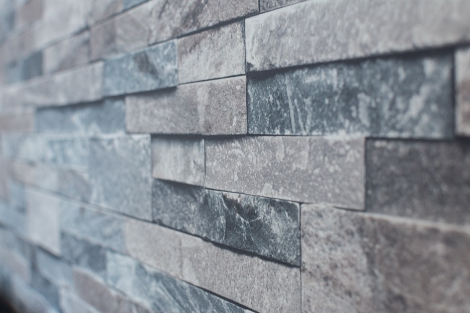 室内の壁はほぼ白を基調としていますが、1面だけ変化を付けると良いアクセントになります。この壁は石壁のようにも見えますが・・・