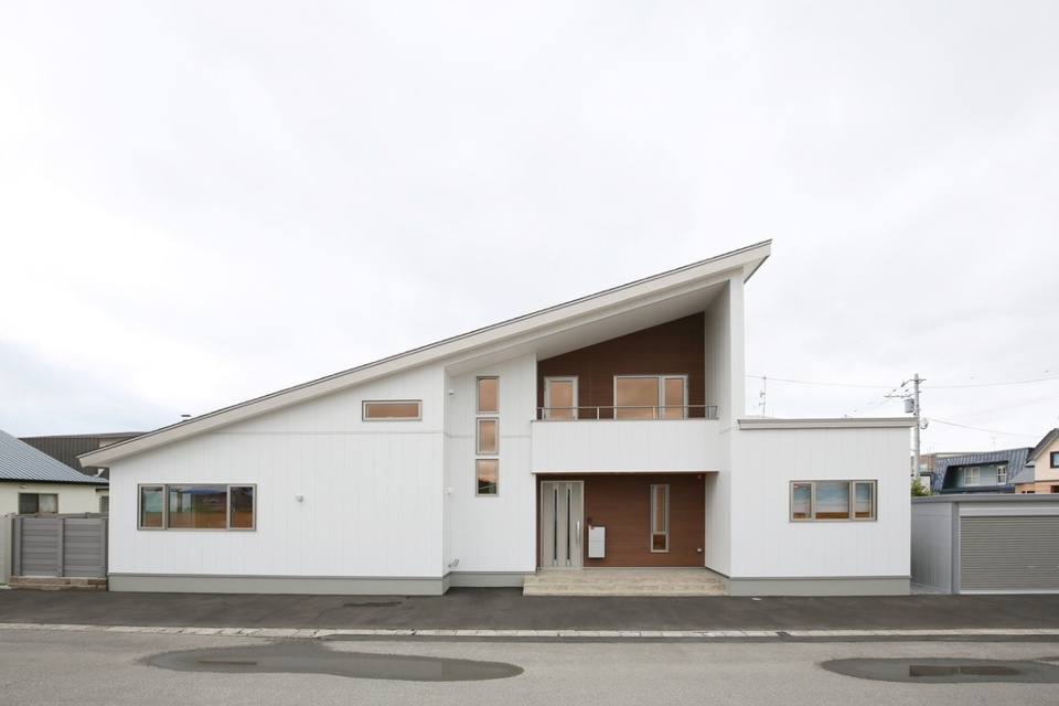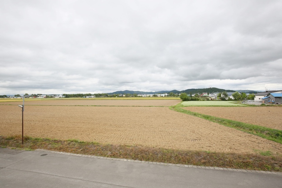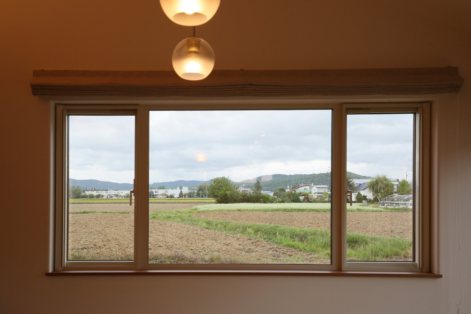 家の前には、一面の畑が広がり、遠くに旭山や大雪山を望む北海道らしいロケーションです。