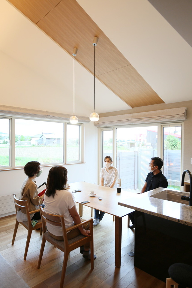 旭川で100年以上の歴史を刻む老舗木材会社の住宅事業部である「昭和木材」の家に惚れ込み、木の表情を生かした唯一無二の家づくりを目指したMさんご夫妻と、設計担当者の林のぞみさんに、魅力的な木の使い方や設計のポイントについてお話を伺いました。