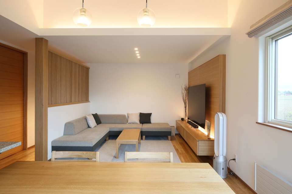すっきりとした木目が生きるタモ材やナラ材をメインに採り入れることで、旭川家具にも通じる北海道の自然美を感じさせる設計デザインになっています。