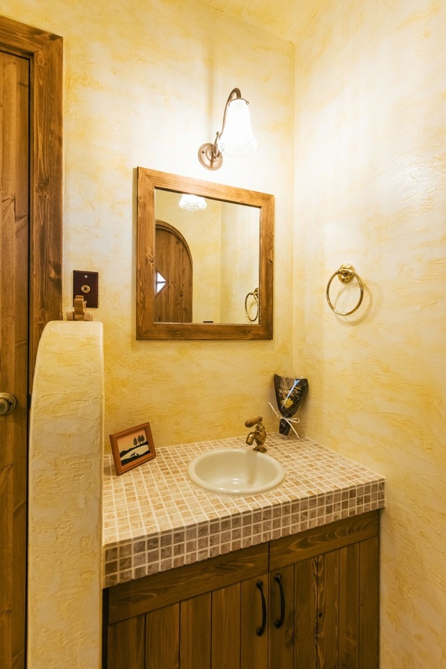 家族用スペースの造りは何度も生活をシミュレーションしてデザインしました。造作の洗面台は奥様がお化粧をするのにちょうどいいよう、鏡をせり出した形で設置。「ちょっとの差ですが、使いやすさが全然違うんです」(奥様)