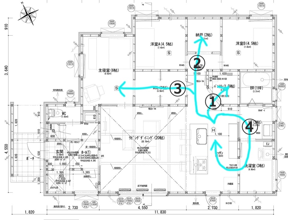 ④ユーティリティへの回遊動線
