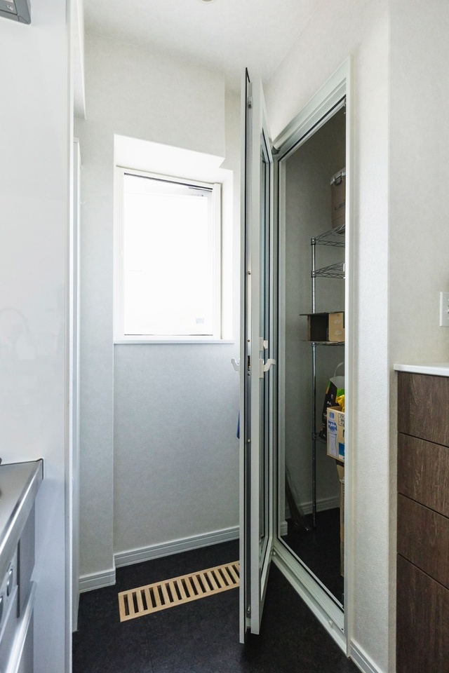 奥様の希望で作った保冷庫。この他に常温のパントリーもあり、キッチンは収納力抜群です。