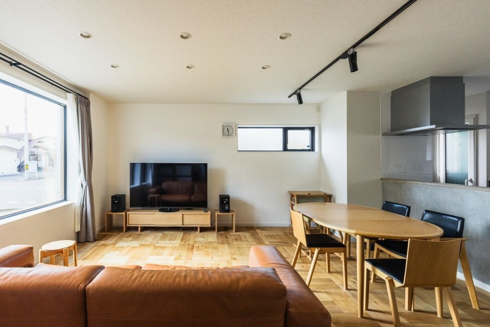 外観は焼き杉でデザイン性をプラス 内装は色数を抑えてモダンに