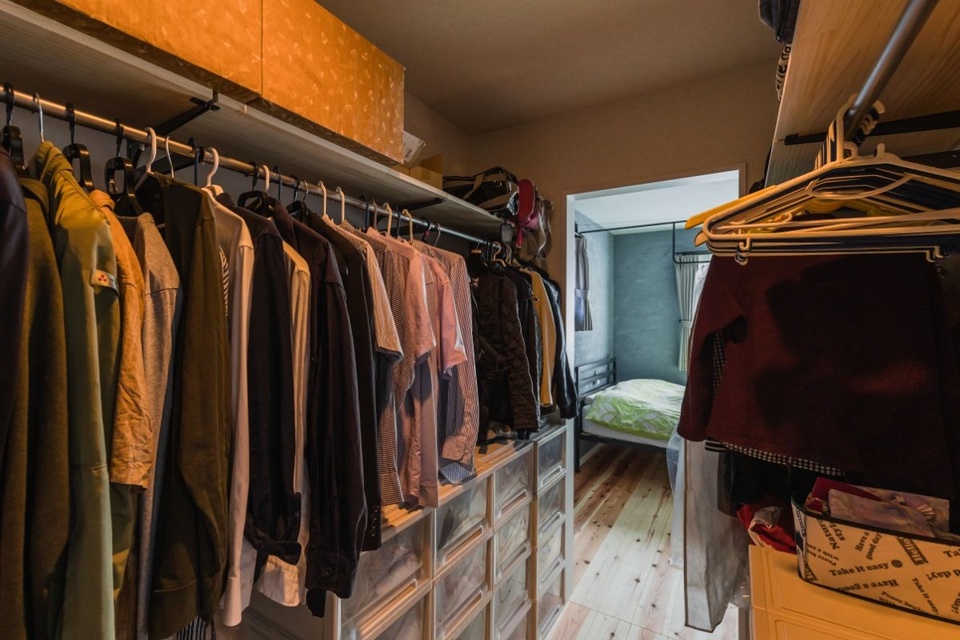 ウォークインクローゼットの棚も、ホームセンターで金具を購入してDIYしました。