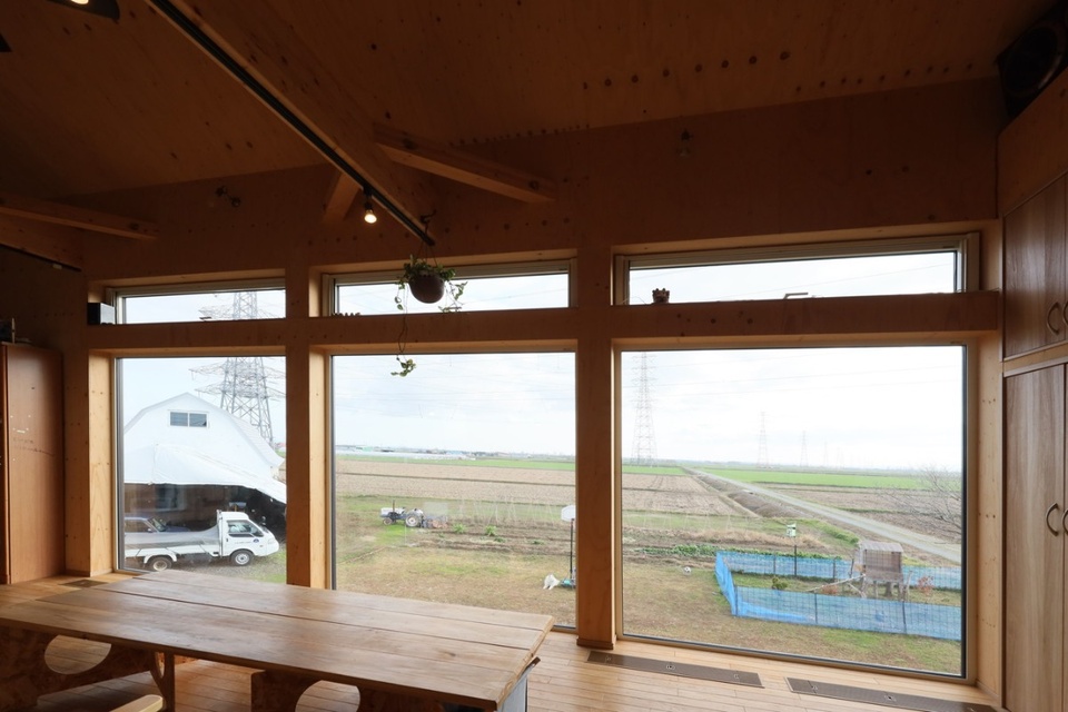 M邸の自慢であり、ファミリーが家づくりで特に重視したのが窓から望める贅沢な景観です。当別の田園風景を一望しやすいように、リビングを2階に配置しました。