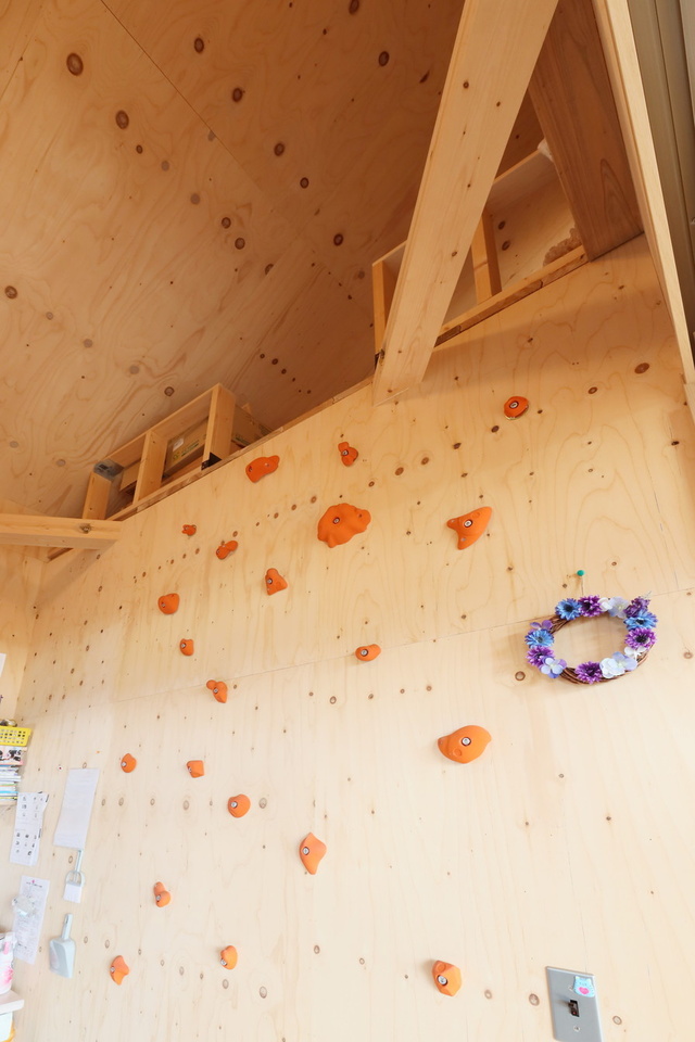 ロフトへはリビングからも行けますが、娘さんの部屋からロッククライミングのように上りながら移動できる、遊び心がありユニークな動線になっています。