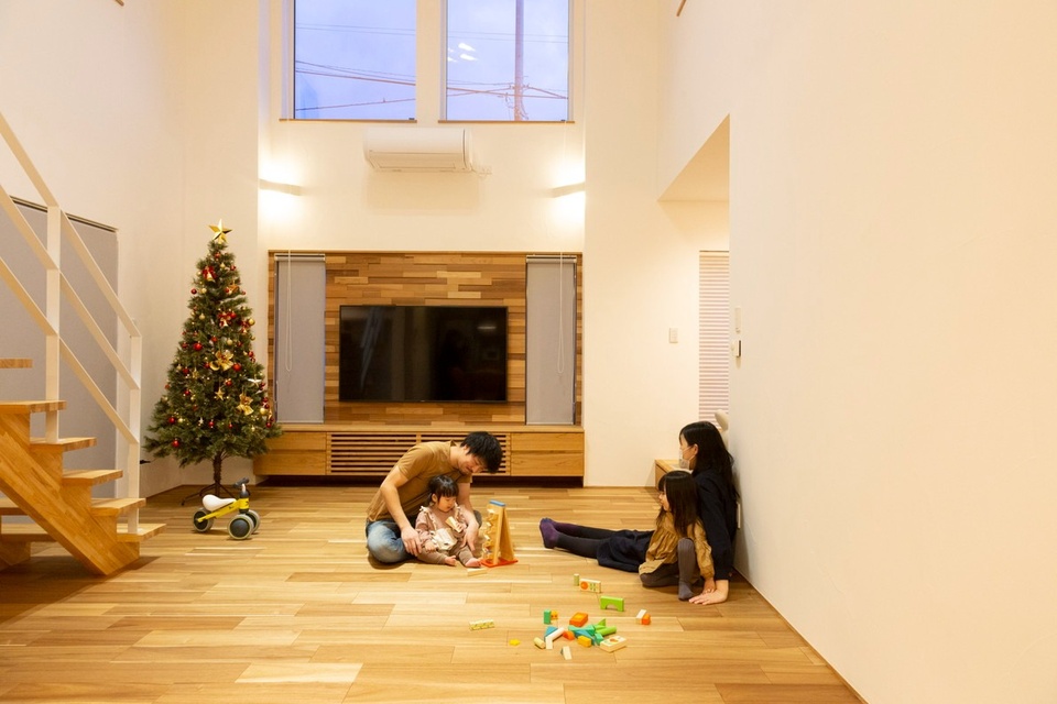 金谷常務 ご主人がご帰宅後、ご自宅での夜の打合せが多く、お子さんたちにも協力していただきました。忙しくてもご夫婦が揃って打合せに参加し、お二人の意見を同時にいただけることがとても有難かったです。みんなが満足できる、やさしさいっぱいの、居心地の良いおうちになりました。