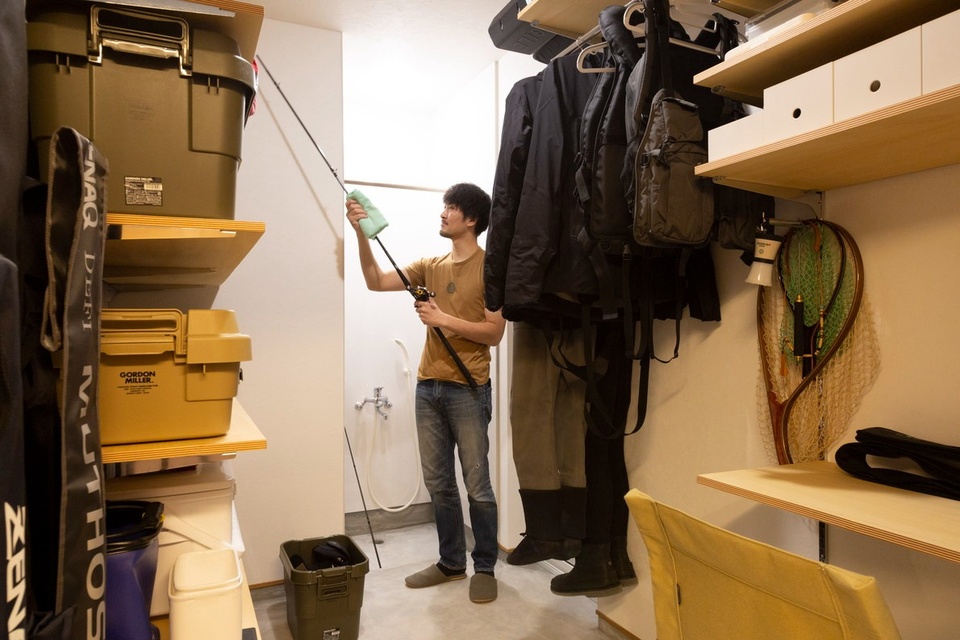 ご夫婦の共通の趣味はアウトドア。Kさんは特に釣りが好きで、釣り道具やキャンプ道具を収納するための専用室を希望しました。通称「釣り部屋」と呼んでいます。