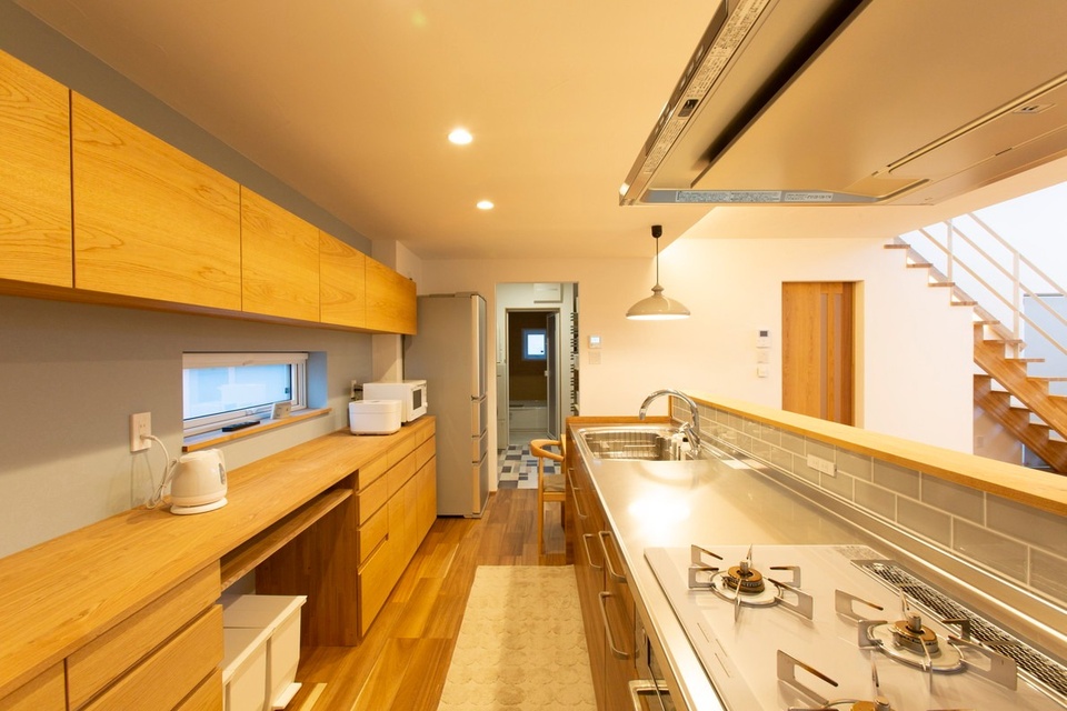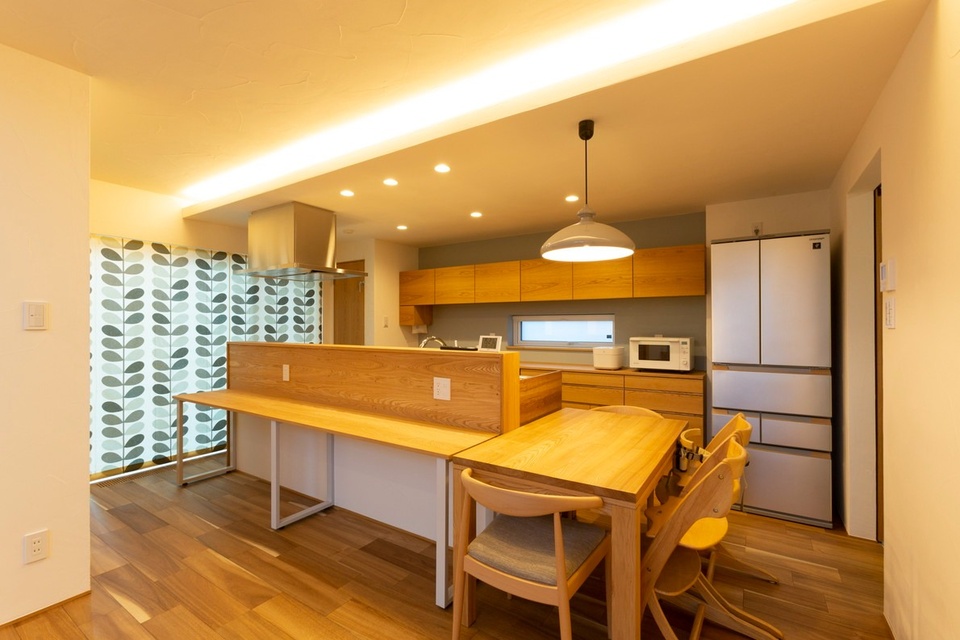 奥さま 子どもたちが成長し、庭で遊ぶようになった時にも、キッチンから様子を見守ることができるようにお願いしました。ダイニングへの配膳にも便利ですし、物を取りに行くにも動きやすいので使い勝手がとても良いです。