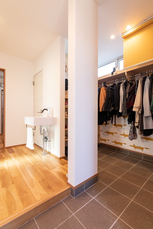 玄関にクローゼットと手洗いを付けて、外と内を分ける境界に