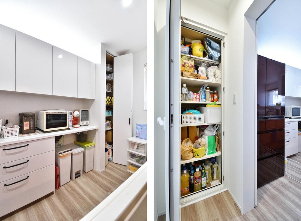 さらに、「収納を多めに」という奥様の希望から大きめの食品庫を2ヵ所に設置。