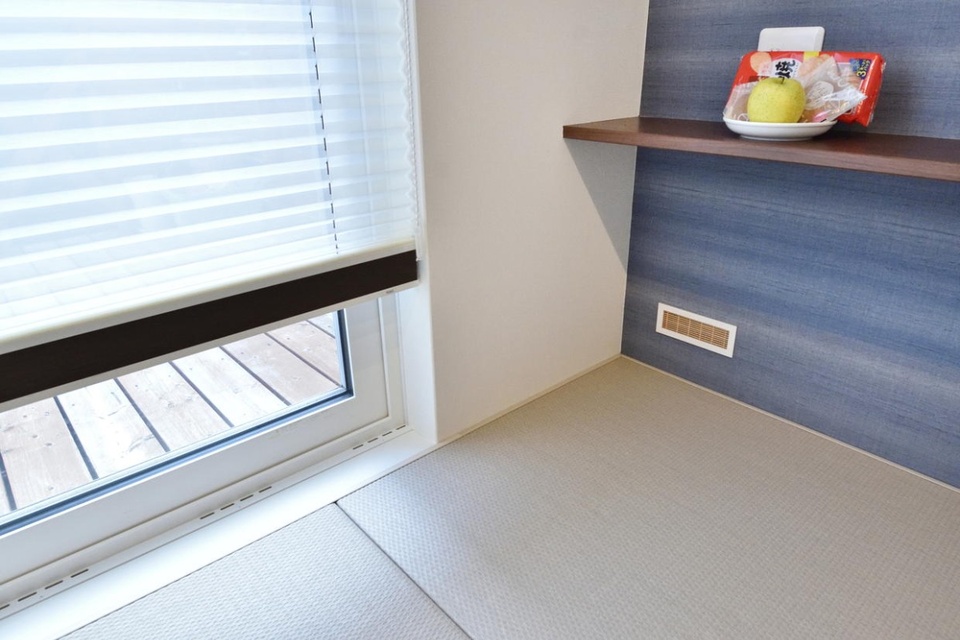 リビングの隣にはウッドデッキに出入りできるモダンな和室があります。