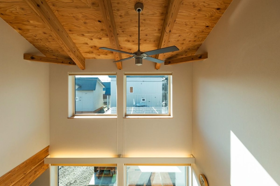 2階の天井にはクロスを貼らず、木の質感と木目をそのまま活かしています。