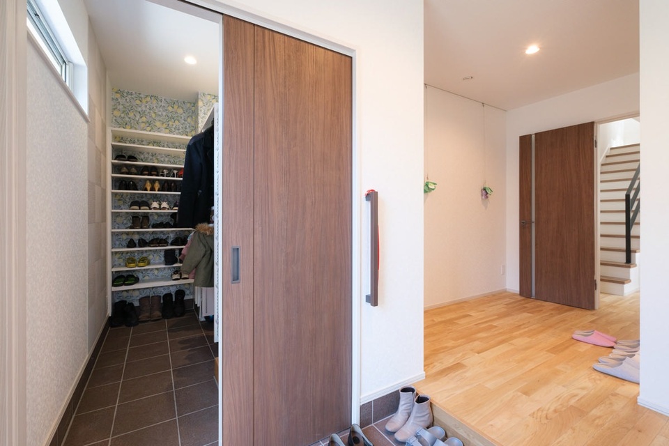 玄関ホールの左側には5人分の靴と普段使いのコートなどを収納する大型のシューズクロークがあります。