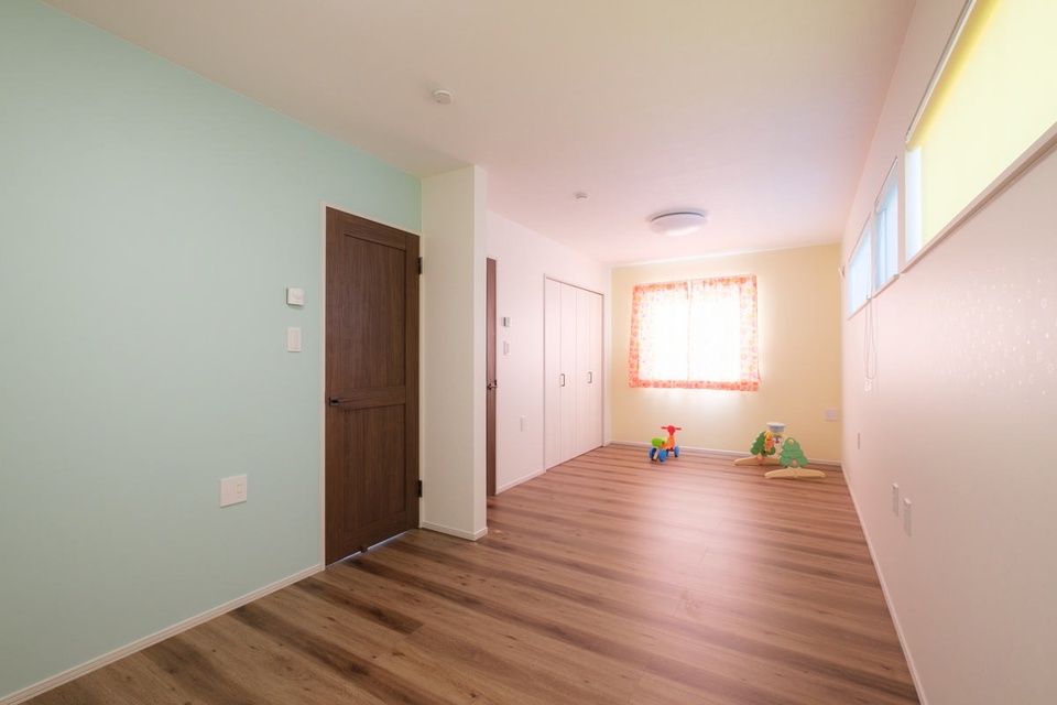 子供部屋は2部屋に仕切って使う時のために出入り口を2つ設けています。