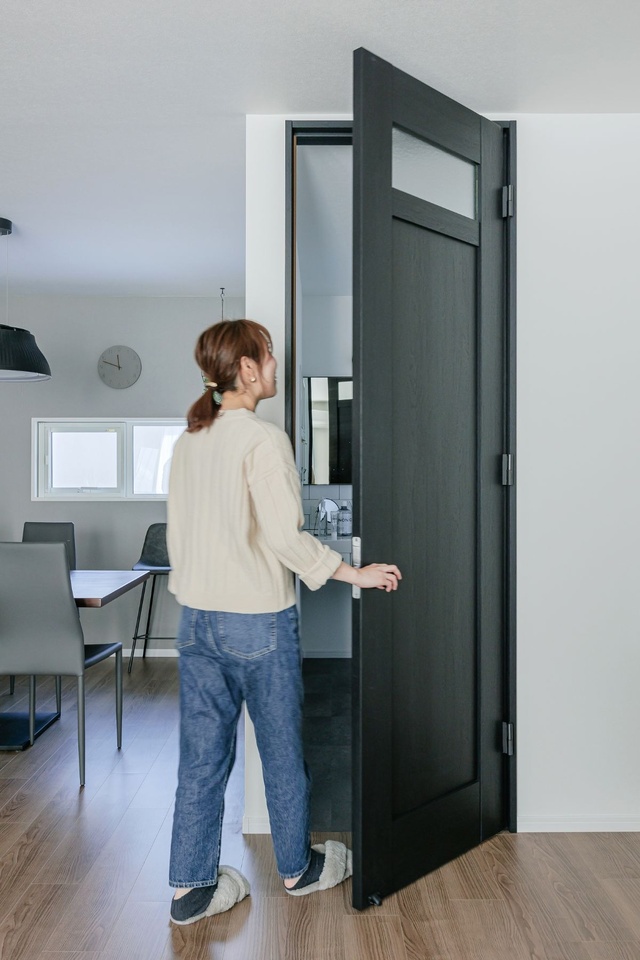 リビングのドアには、垂れ壁がないデザイン性の高さや、開放感、高級感があるハイドアをチョイス。