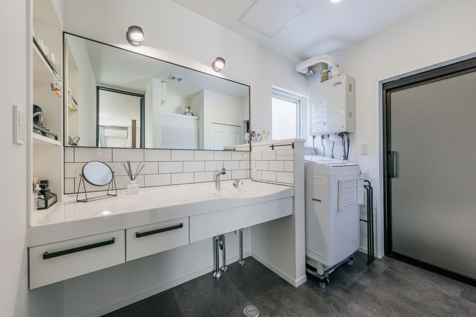 リフォーム前はコンパクトだった洗面台は……