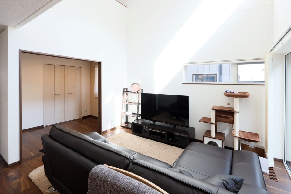 リビングはワイドな吹抜けの空間設計、老後に配慮した予備室も用意