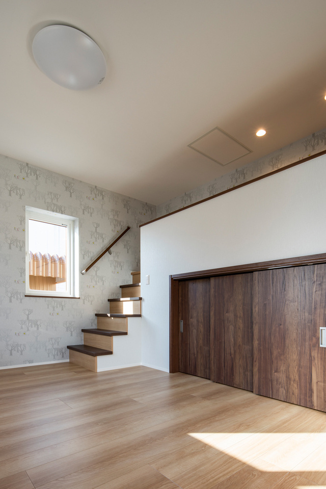 唯一の階段は、リビングに隣接する洋室に作ったロフトにつながる6段だけ。ロフトスペースは、お孫さんたちがお気に入りの遊び場になっています。