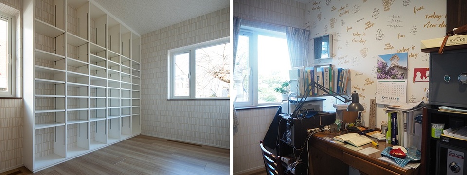 ご主人の書斎は、壁全面に可動式の書棚を造作しています。